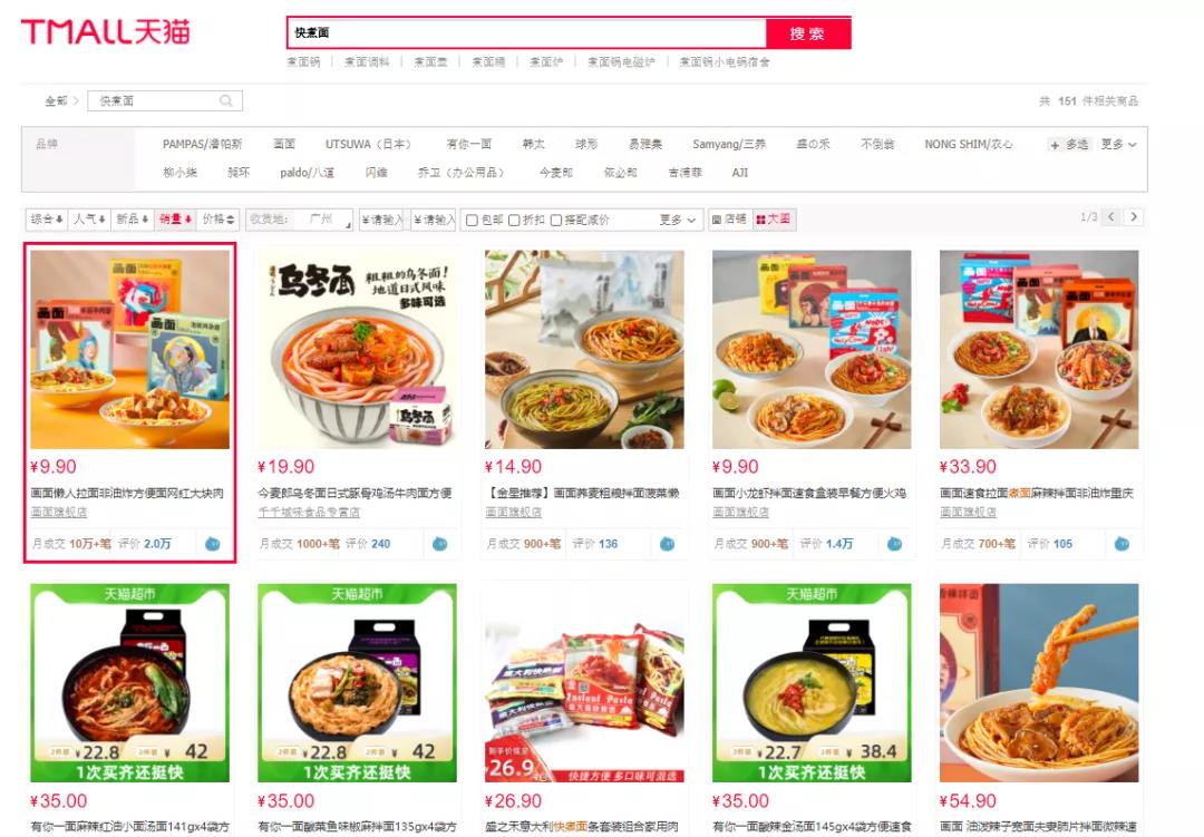 近日,畫面天貓旗艦店經過天貓運營僅用短短15天內銷量近達20萬單,直沖方便面/拉面/面皮品類第一。