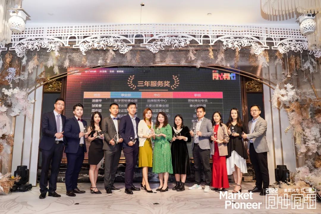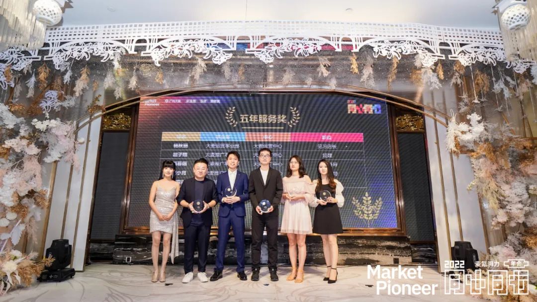 麥氪湃力集團董事長兼廣州大麥創始人余煥文Wyman在會上細數了過去十年的發展,并表達了對全體麥子們的感謝與期望,為新的一年加油鼓勁。Wyman表示,“負重前行,充滿機遇 ”是過去一年電商人的主題。在過去十年間,我們在業務能力的打磨上狠下功夫,為集團發展打下了堅實的基礎。2021年,我們經歷了后疫情的電商時代,面對多樣的電商形態迸發,我們不懼未知,擁抱變化,積極響應新趨勢; 在客戶及平臺提出的新期許下,實現了多元化戰略升級,客戶體驗持續提升,服務體系逐步優化。2021年,麥氪湃力(廣州大麥)在多平臺運營上進行深度的探索,獲得了天貓五星級服務商、阿里媽媽營銷拍檔五星級服務商、品牌數據銀行及策略中心雙認證;在數字營銷領域,獲得了金鼠標年度數字營銷創新力代理公司、TopDigital年度新銳公司及場景營銷獎、阿里媽媽m awards最佳會員營銷獎等;在抖音電商領域,獲得抖音認證服務商、抖音巨量云圖認證服務商。與此同時,我們還獲得了TBI年度品牌服務獎、最杰出十大電商服務機構、IEBE互聯網新商業十年高質量發展企業等多個專業機構頒發獎項,在電商運營、電商推廣、數字營銷、品牌管理等多項能力頗受行業認可。“堅持客戶第一”是麥氪湃力新財年的聚焦方向,通過技術和體驗持續提升客戶滿意度,升級企業卓越經營,發揮團隊作戰精神,讓服務更上一臺階。隨后,麥氪湃力各主要領導輪番上陣,分別對集團新業務拓張、業務發展、三大戰略抓手也進行了總結,帶領全體麥子共同探討屬于麥氪湃力的2022。十年如一,堅守不渝,麥氪湃力在各個領域取得的非凡成績與團隊每一位成員的堅守打拼密不可分。2021,是備受鼓舞的一年,在全場掌聲和期待中,奧斯卡般嚴格保密的年度各大獎項也一一揭曉。他們群策群力,力爭上游,不斷為客戶創造新的能力價值,此刻我們凝聚一起,共同見證榮耀時刻。在年會現場,公司頒發了年度優秀團隊優秀、優秀管理、優秀員工、螞蟻搭檔、點贊之星、突出貢獻獎等獎項,以表彰在過去一年對公司做出突出貢獻的個人和團隊。此外,還有最重磅經典的“三年服務獎、五年服務獎”。集團成立以來,在關鍵人才培養及企業文化方面持續投入,建立完善培訓及晉升機制;并通過人事、行政、組織文化及多部門之間的通力協作,為員工們打造了展現實力的扎實舞臺。