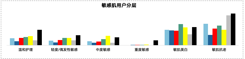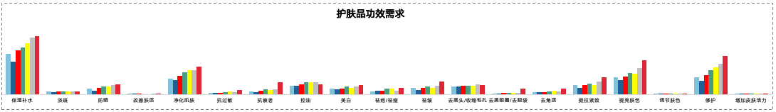季節的變化、熬夜的作息習慣、工作壓力等多種原因導致現代人們多有皮膚屏障受損的問題,容易形成敏感肌。因此防曬霜的購買人群開始偏向于敏感性膚質,偏好美白與抗老的功效并且關注保濕補水、提亮膚色、修護、凈化肌膚等功效的護膚品。